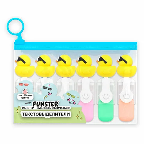 Набор текстовыделителей с топперами 6 ЦВЕТОВ ПАСТЕЛЬ, 'КРУТЫЕ УТЯТА', линия 1-4 мм, FUNSTER (ФАНСТЕР