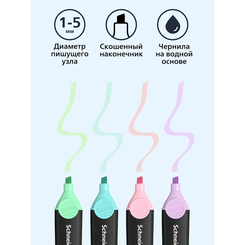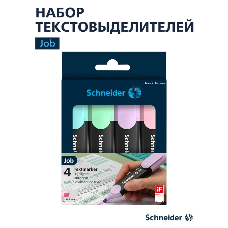 Набор текстовыделителей Schneider Job 4 цвета, пастельные цвета, 1-5мм, скошенный наконечник