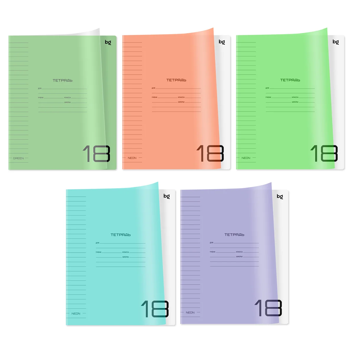 Отзывы о «Набор тетрадей 18л., линия BG 'Однотонный. Микс', пластиковая обложка, 10шт.»