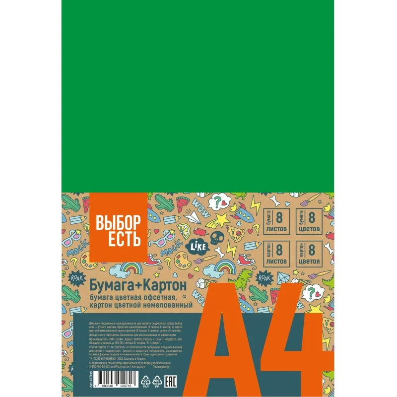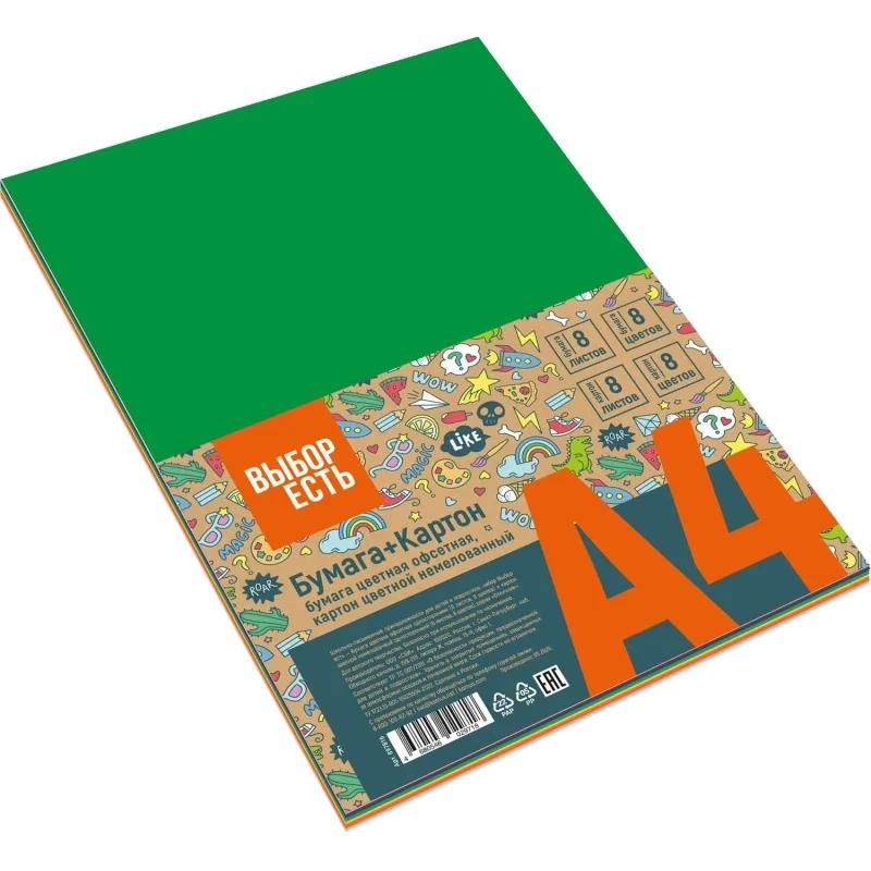 Набор цветного картона и бумаги Выбор есть (282×201 мм, 16 листов, 8 цветов)
