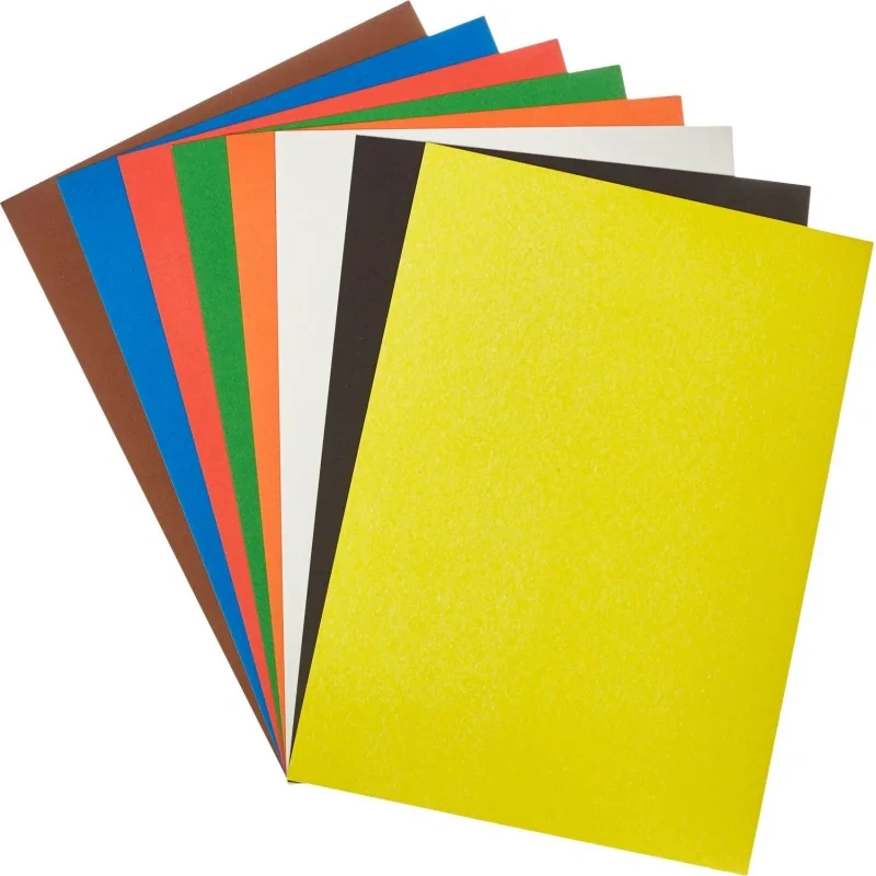 Набор офсетной цветной бумаги (8 цветов на 8 листах) и немелованного картона (8 цветов на 8 листах) подходит для создания аппликаций, изготовления поделок.