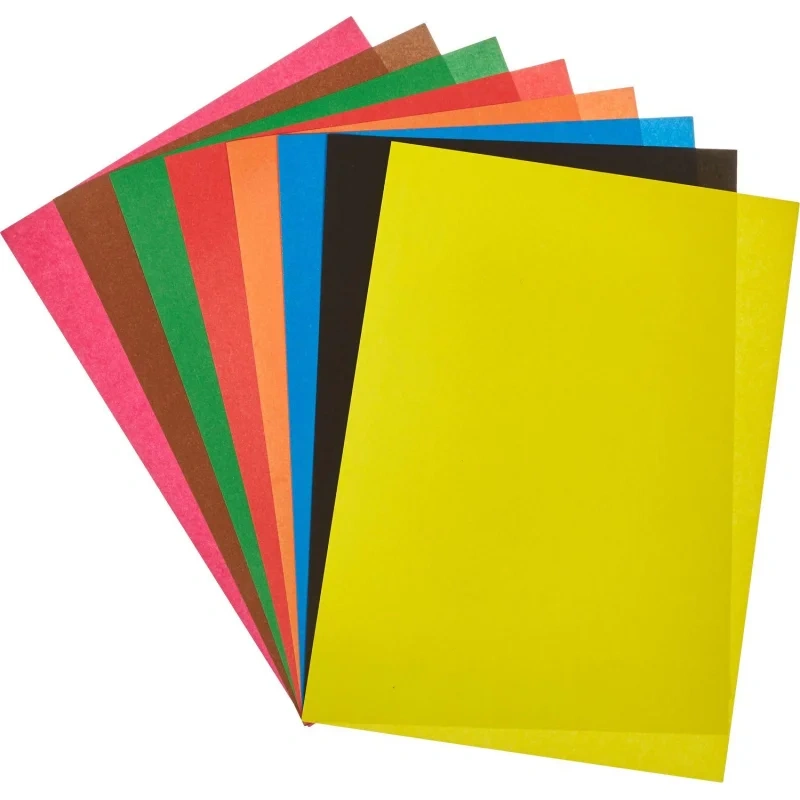 В наборе листы размером 201×282 мм, плотность цветной бумаги — 190 г/кв.м., плотность картона — 220 г/кв.м.
