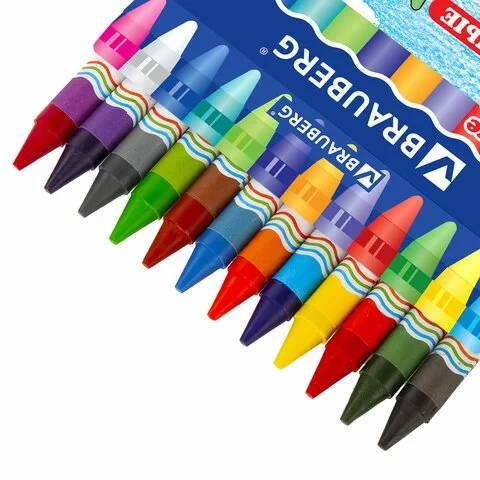 Палитра состоит из 12 ярких и насыщенных цветов. Полностью безопасны в использовании, не токсичны и не имеют резкого запаха. Благодаря своему составу карандаши пишут мягко, и ребенку не придется прикладывать усилия в процессе рисования. Утолщенная круглая форма корпуса и диаметр 11 мм делают их еще более удобными для тренировки руки к письму у дошкольников и детей младшего школьного возраста, формируют навык правильного захвата, снижают нагрузку на кисти рук. Каждый карандаш завернут в бумажную этикетку, что предохраняет от загрязнений, снижает скольжение, увеличивает прочность. Восковые карандаши упакованы в картонную коробку с европодвесом.