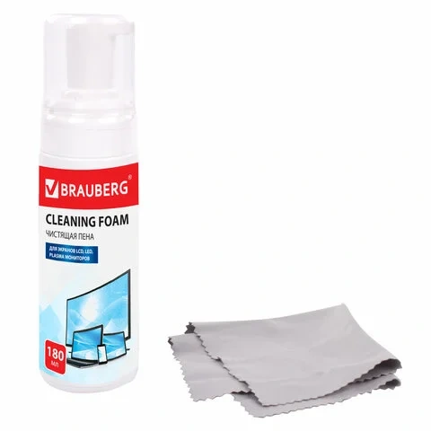 Набор для чистки экранов Brauberg салфетка и пена 180мл, 511693