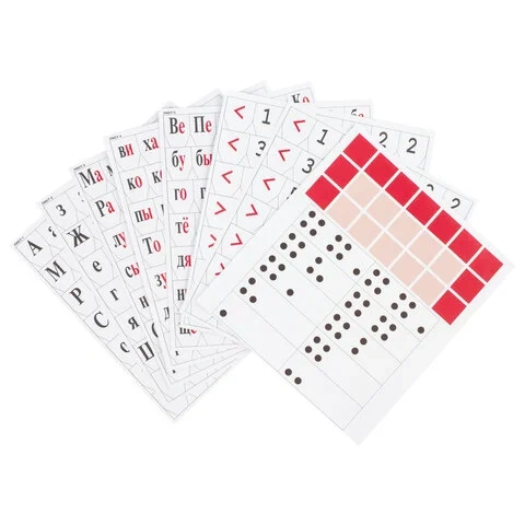 Касса содержит 8 бумажных карточек формата А5 с напечатанными на них буквами, цифрами, математически...