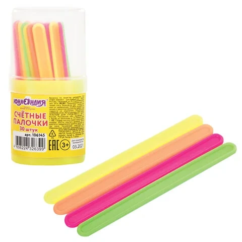 Набор содержит 30 пластиковых палочек с закругленными краями 4-х ярких цветов. Палочки помещены в пл...