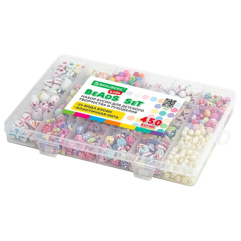 Набор BEADS SET для творчества, рукоделия и создания украшений, 450 бусин, 24 вида, нить, BRAUBERG K