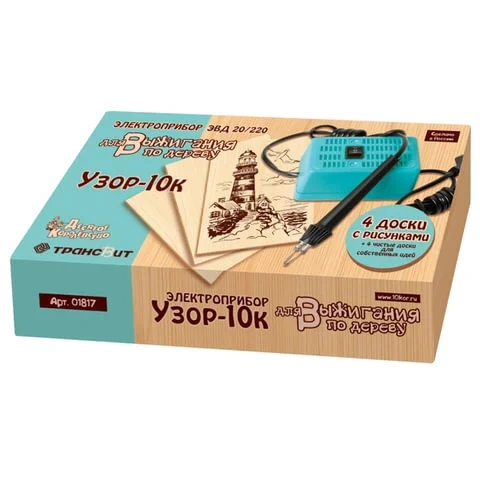 Набор для выжигания 'Узор-10к', выжигатель + 8 досок (4 с рисунком + 4 чистых), 15x21 см, 'Десятое к