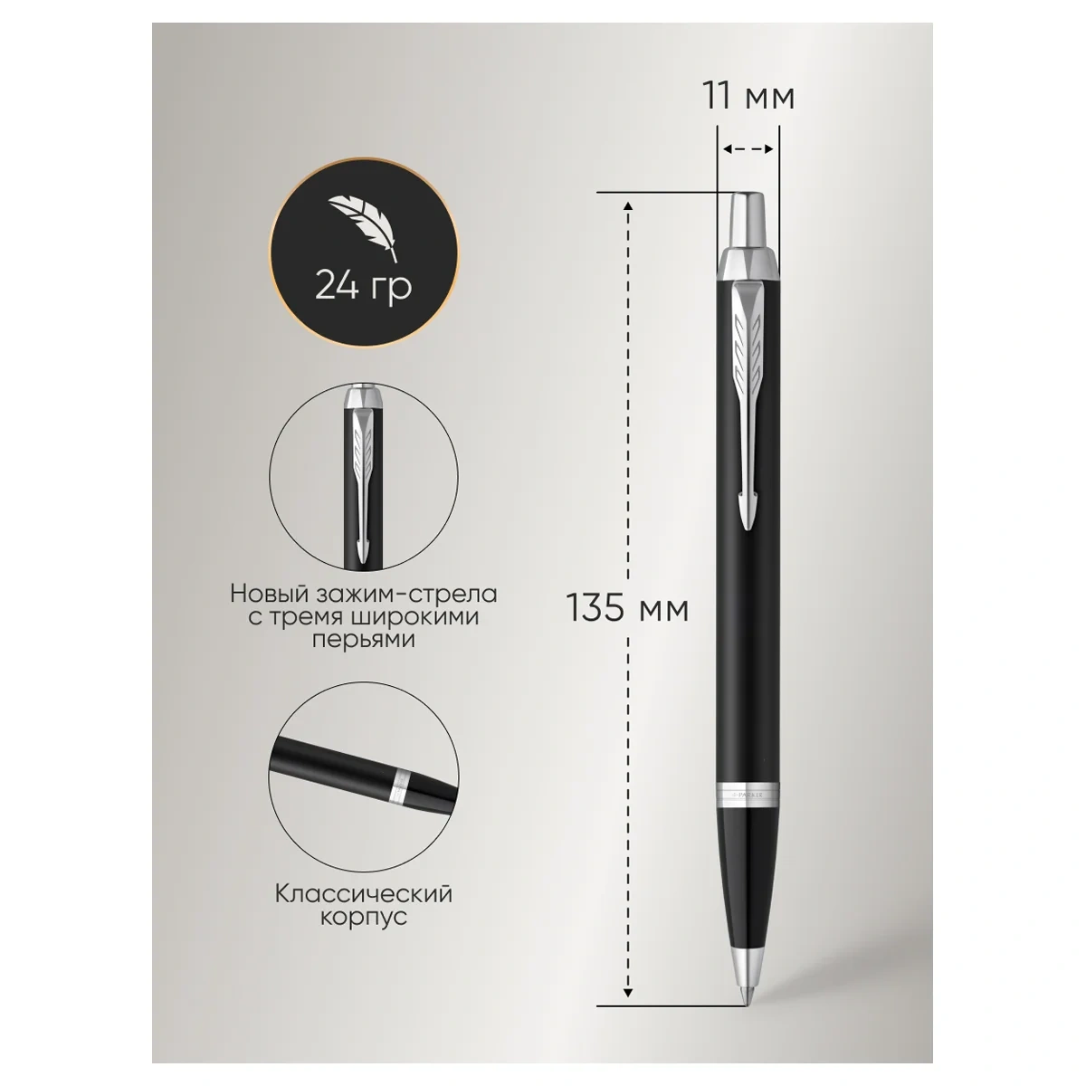 Ручка шариковая Parker 'IM Essential Muted Black CT' синяя, 1,0мм, кнопочн., подарочная упаковка