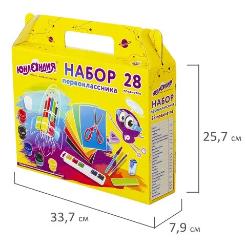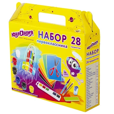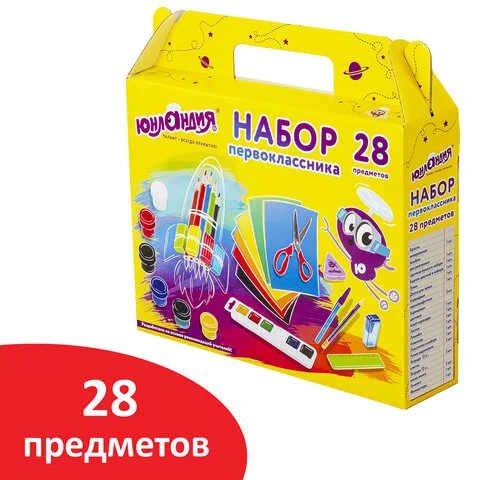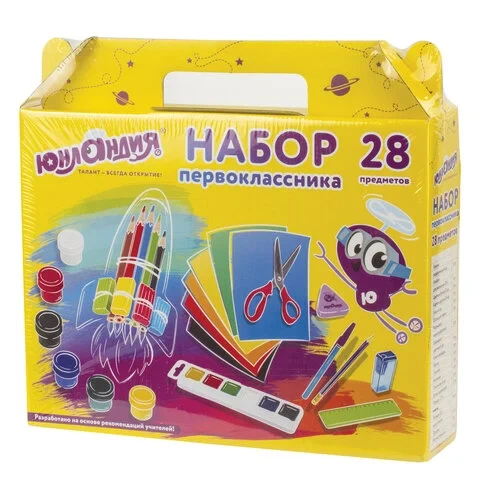 Набор школьных принадлежностей в подарочной коробке ЮНЛАНДИЯ 'НАБОР ПЕРВОКЛАССНИКА', 28 предметов, 8