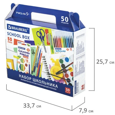 Набор школьных принадлежностей в подарочной коробке BRAUBERG 'ШКОЛЬНЫЙ УНИВЕРСАЛЬНЫЙ', 50 предметов,