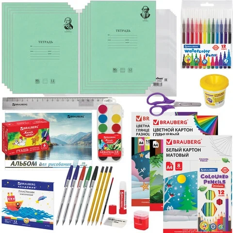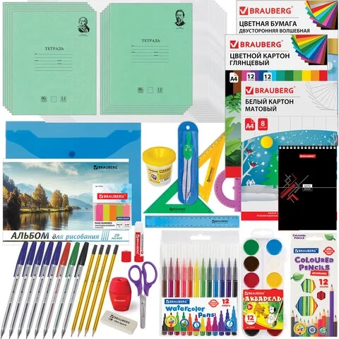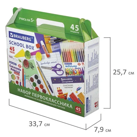 Набор школьных принадлежностей в подарочной коробке BRAUBERG 'НАБОР ПЕРВОКЛАССНИКА', 45 предметов, 8