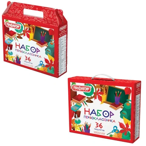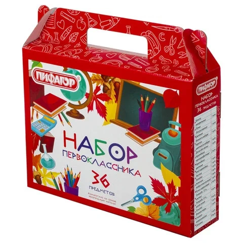Набор школьных принадлежностей в подарочной коробке ПИФАГОР 'НАБОР ПЕРВОКЛАССНИКА', 36 предметов, 88