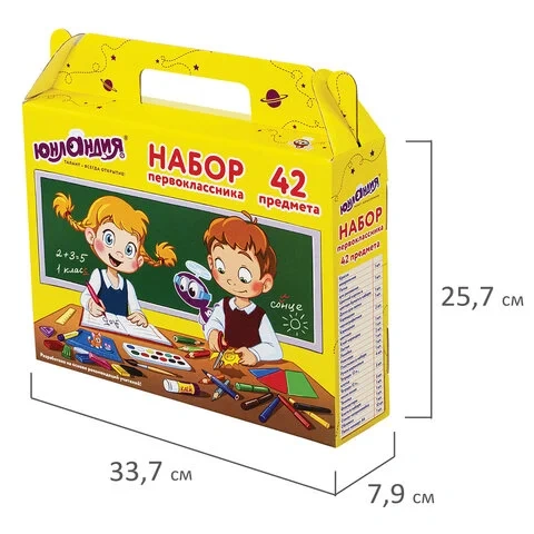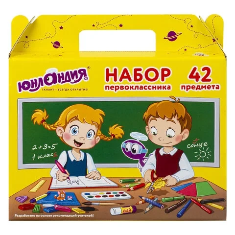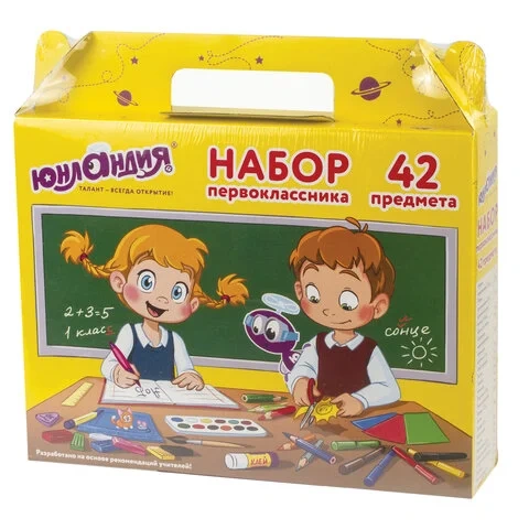 Набор школьных принадлежностей в подарочной коробке ЮНЛАНДИЯ 'НАБОР ПЕРВОКЛАССНИКА', 42 предмета, 88
