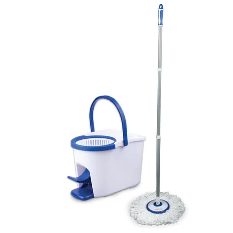 Набор для уборки Laima Дом и офис 5л, ведро с отжимом и педалью, с шваброй, бело-синий