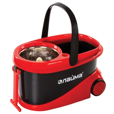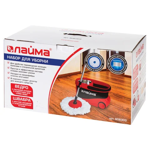 Набор для уборки ЛАЙМА, ведро 19 л/9 л с отжимом центрифуга, на колесах, швабра с круглой насадкой (