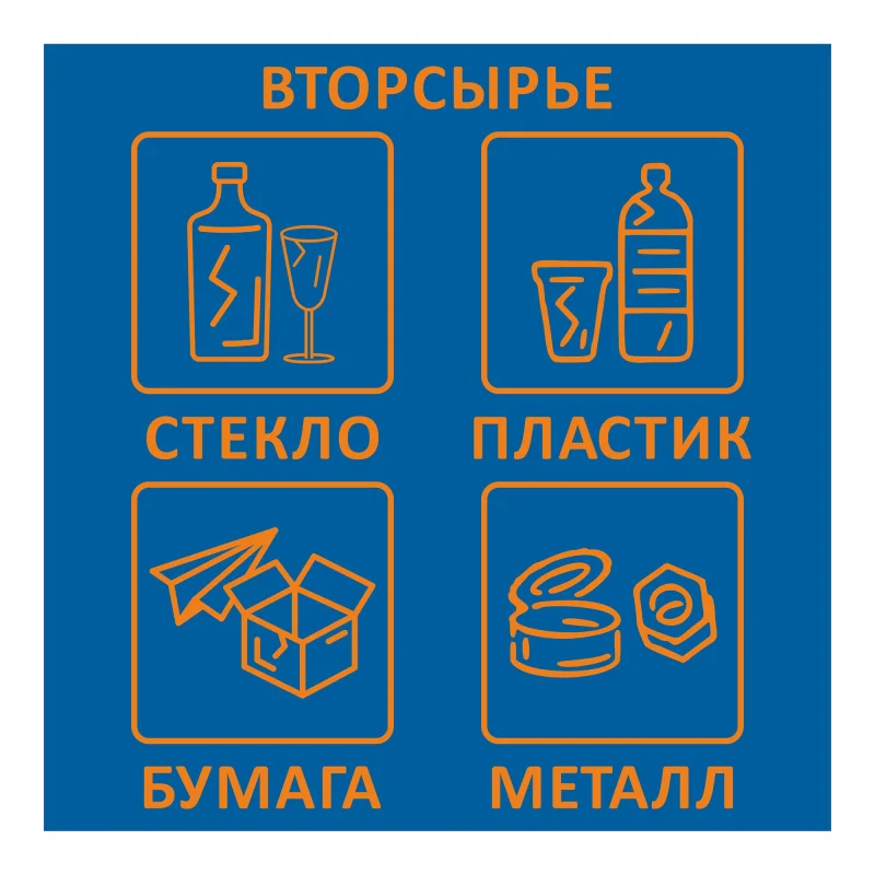 Наклейка «Вторсырье» информирует граждан о корректном выборе контейнера при утилизации мусора с целью заботы об окружающей среде. Размер 200×200 мм. В упаковке 4 шт.