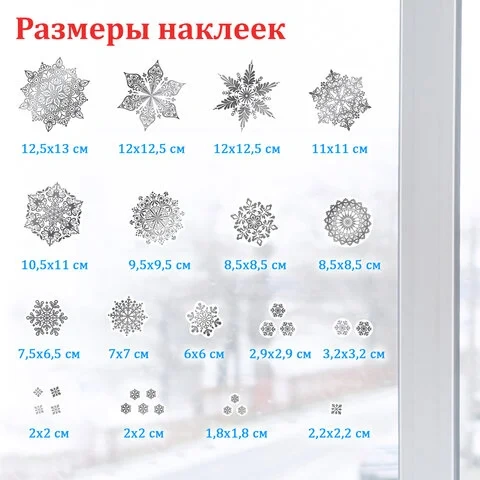Изделие с изображением фольгированных снежинок представляет собой наклейку, изготовленную из поливинилхлорида (ПВХ). Наклейка размером 30x38 см. Снежинки имеют металлизированный эффект. Украшение предназначено для декорирования окон, зеркал, стекол и других ламинированных глянцевых поверхностей. Не оставляет клеевых следов и предназначено для многократного использования. Крепится к поверхности посредством статического эффекта.