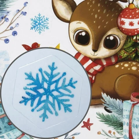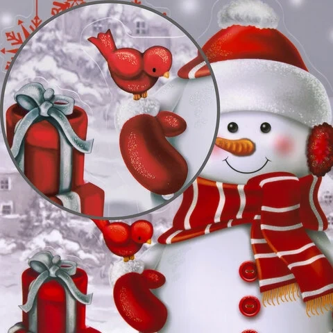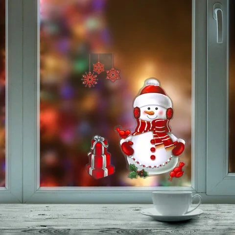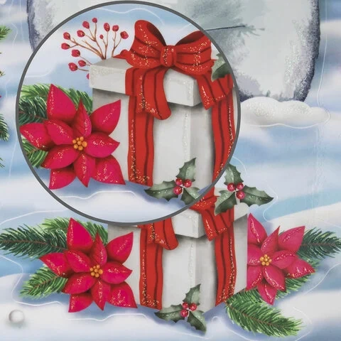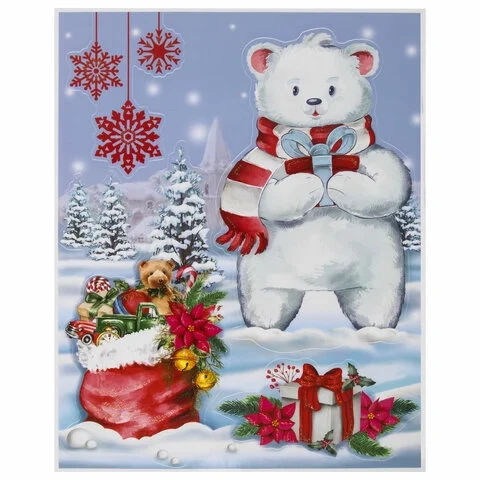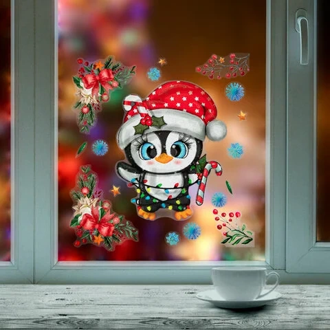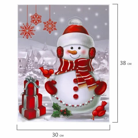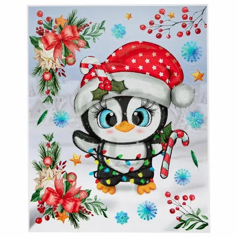 Товар представляет собой наклейку, изготовленную из поливинилхлорида (ПВХ). Поставляется в 4 вариантах дизайна без возможности выбора. Наклейка размером 30x38 см декорирована разноцветным глиттером. Украшение предназначено для декорирования окон, зеркал, стекол и других ламинированных глянцевых поверхностей. Не оставляет клеевых следов и предназначено для многократного использования. Крепится к поверхности посредством статического эффекта.