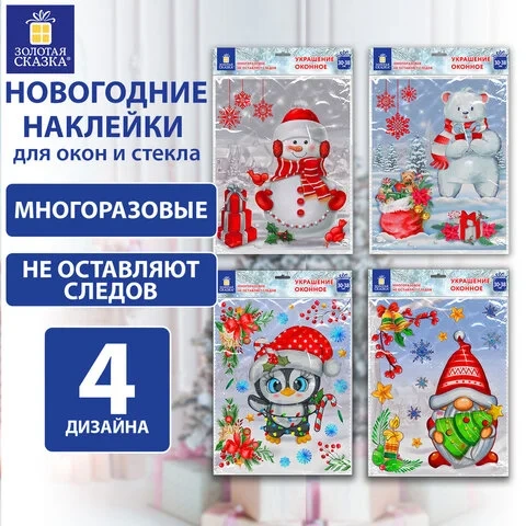 Наклейка на окно Золотая Сказка ссорти № 2, двусторонняя, 30х38см