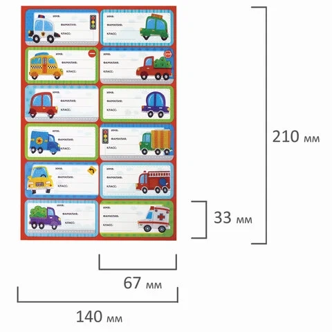 Наклейки для маркировки школьных принадлежностей 'Машинки', 12 штук, 14х21 см, ЮНЛАНДИЯ, 662712