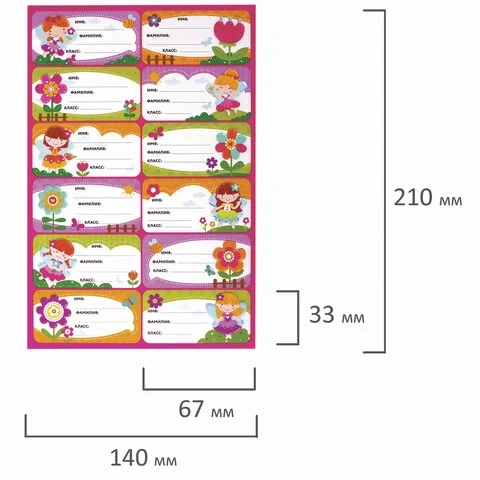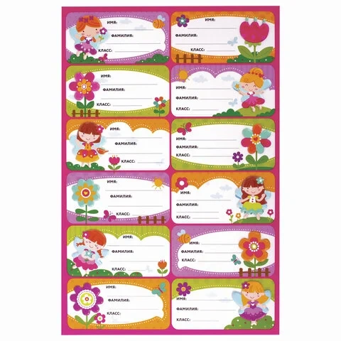 Наклейки для маркировки школьных принадлежностей 'Принцессы', 12 штук, 14х21 см, ЮНЛАНДИЯ, 662709