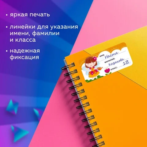 Качественный клеевой слой обеспечивает надежную фиксацию на бумаге, картоне и пластике, это значит, что такую наклейку можно разместить как на тетради и альбоме для рисования, так и на пластиковых обложках для учебников и даже упаковке красок.
