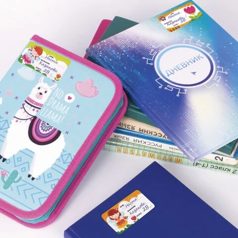 В наборе содержится 12 бумажных наклеек с объёмными элементами из мягкого пластика. На каждой наклейке предусмотрены линейки, на которых школьник может указать своё имя, фамилию и класс. Школьные наклейки - это не только удобный, но ещё и красивый способ индивидуализировать вещи ученика.
