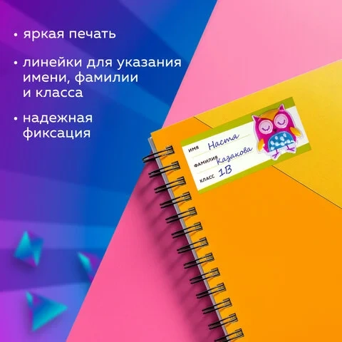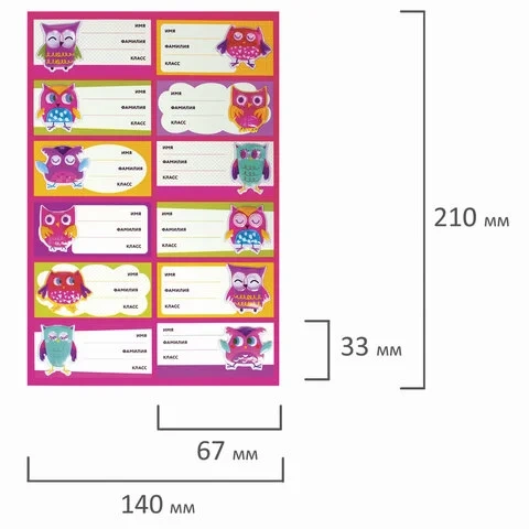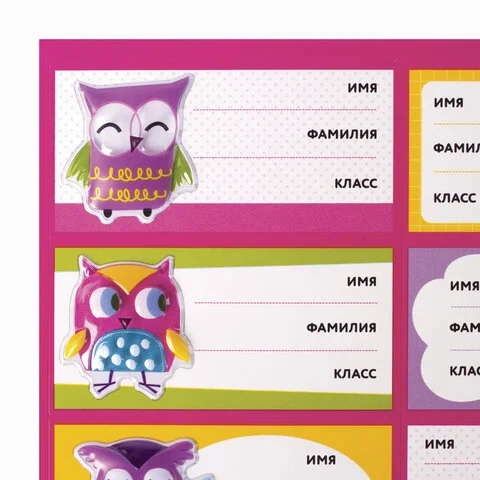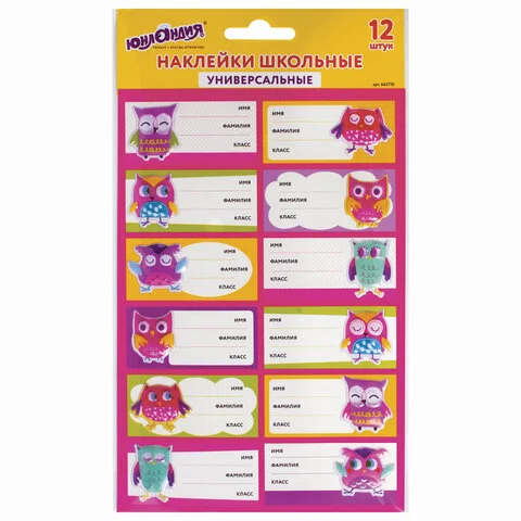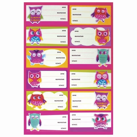 Наклейки для маркировки школьных принадлежностей 'Совы', 12 штук, 14х21 см, ЮНЛАНДИЯ, 662710