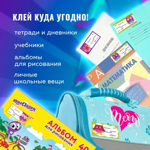 Качественный клеевой слой обеспечивает надежную фиксацию на бумаге, картоне и пластике, это значит, что такую наклейку можно разместить как на тетради и альбоме для рисования, так и на пластиковых обложках для учебников и даже упаковке красок.