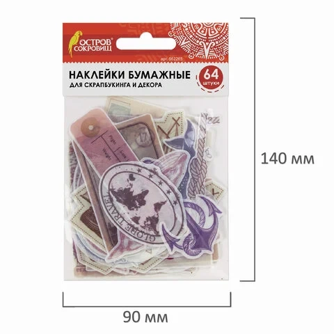 Наклейки для скрапбукинга ПУТЕШЕСТВИЕ из washi-бумаги, 64 штуки, 32 дизайна, ОСТРОВ СОКРОВИЩ, 662265