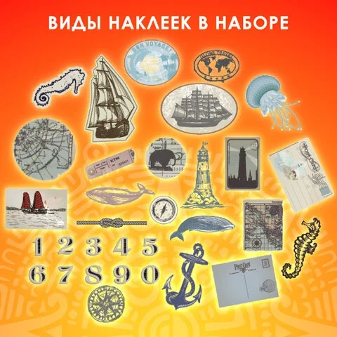 Наклейки в данном наборе объединены единой тематикой 'Путешествие' - это винтажные карты, корабли и другие изображения в морской тематике, пронизанные духом путешествий. Прекрасно подойдут для использования в скрапбукинге, декупаже и других видах творчества.