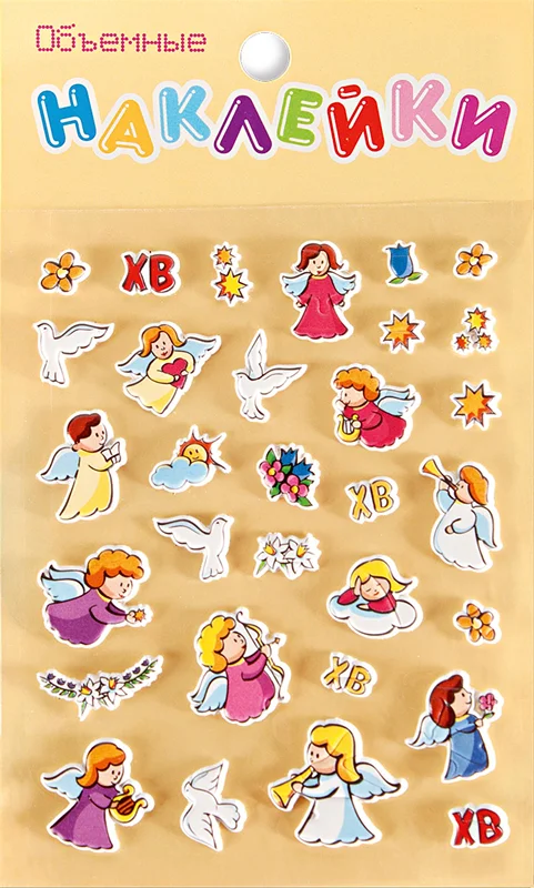 Наклейки выполнены в форме раскрашенных яиц, зайчиков и другой символики, связанной с праздником Пасхи. Они предназначены для украшения интерьера, посуды и предметов сервировки к Светлому воскресенью.