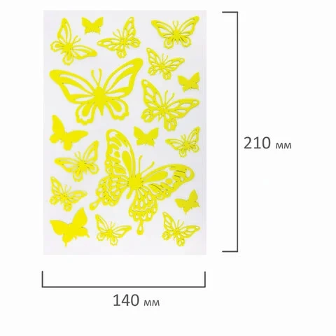 Наклейки флуоресцентные 'Бабочки', светятся в темноте, 18 штук, ассорти, 14х21 см, ЮНЛАНДИЯ, 662693