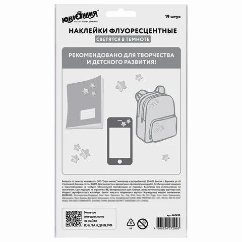 В наборе содержится 18 наклеек в форме бабочек. На прозрачную плёнку нанесено напыление флуоресцентной краской, благодаря чему наклейки светятся в темноте. Подойдут для украшения тетради, блокнота для записей, гаджета или любой поделки, создавая волшебное свечение!