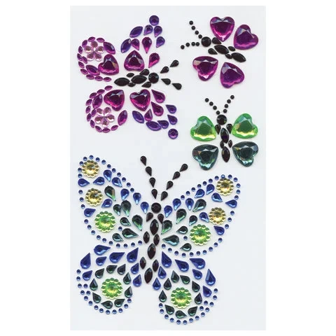 Наклейки готовые из страз БАБОЧКИ, 4 декоративных элемента, 9,5х15,5 см, ОСТРОВ СОКРОВИЩ, 661562