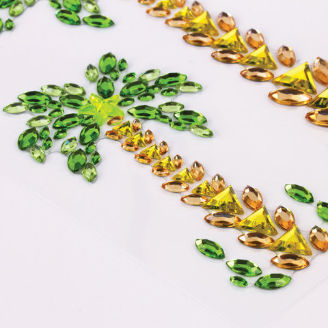 Наклейки готовые из страз ПАЛЬМЫ, 3 декоративных элемента, 9,5 х 15,5 см, ОСТРОВ СОКРОВИЩ, 661564