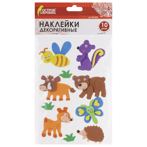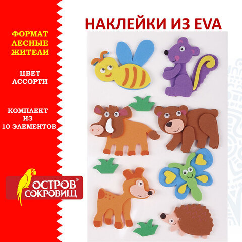 Наклейки из EVA 'Лесные жители', 10 шт., ассорти, ОСТРОВ СОКРОВИЩ, 661462