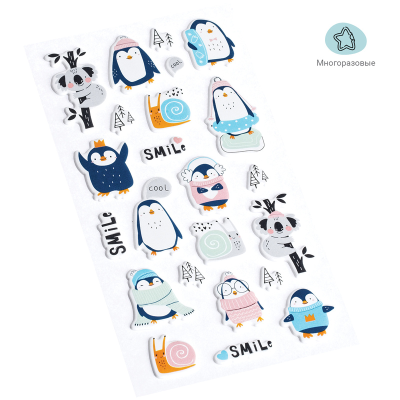 Яркие объёмные наклейки для декорирования MESHU Cute friends идеально подходят для украшения любых поделок и отлично поднимают настроение. Наклейки выполнены в милом дизайне с забавными пингвинами и коалами. Лист с наклейками представлен в размере 10*19 см. В упаковке от 10-15 объёмных наклеек, изготовленных из вспененных полимеров.