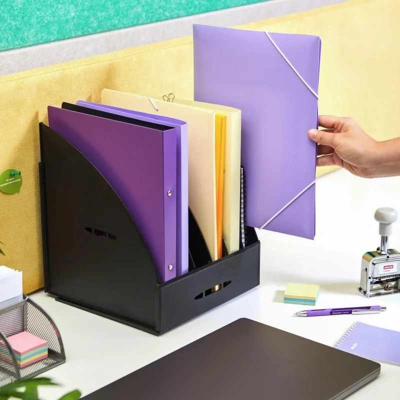 Вертикальный накопитель Attache выполнен из пластика черного цвета. Классический дизайн лотка придаст Вашему рабочему столу строгости. Позволяет рационально использовать место на рабочем столе. Дает возможность удобно хранить и сортировать документы и печатную продукцию формата А4. Имеет 5 отделений. Размеры изделия (ДxШxВ): 235×240×285 мм. Внутренняя ширина: 240 мм, внешняя ширина по выступающим деталям: 252 мм. Вес: 1239 г. Конструкция требует самостоятельной сборки, что позволяет регулировать ширину отделения кратно 40 мм. Съемный передний бортик. Возможно крепление на вертикальных плоскостях. Удобен для хранения большого объема документов. Этикетки для маркировки в комплект поставки не входят.
