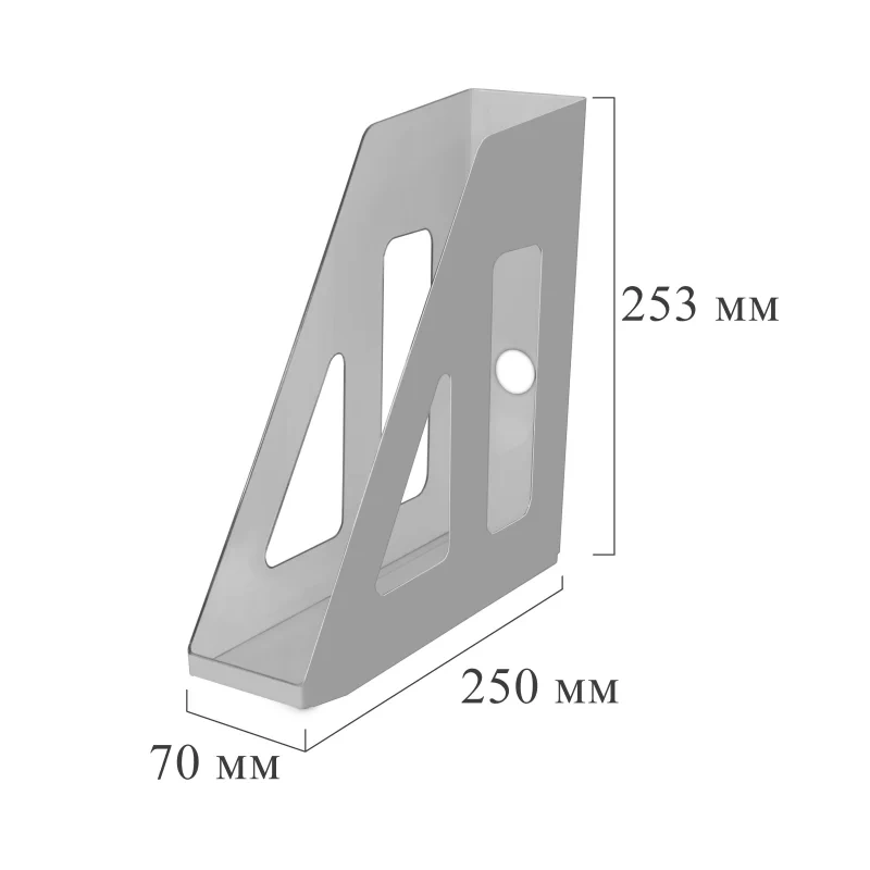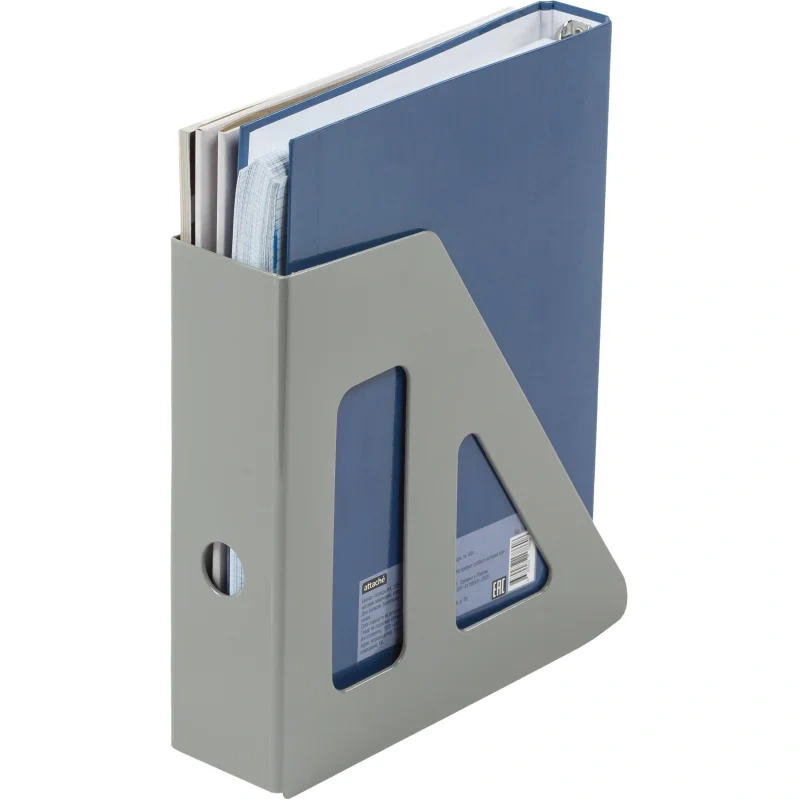 Вертикальный накопитель Attache предназначен для хранения и сортировки документов и печатной продукции формата А4. На торце имеется отверстие для удобного снятия накопителя с полки. Изготовлен из пластика. Цвет: серый. Размеры изделия (ДxШxВ): 25070253 мм.