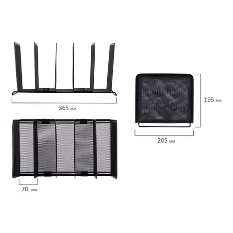 Изготовлена из металлической сетки черного цвета. Имеет 5 секций и 6 отделений. Размер - 195х205х365 мм.