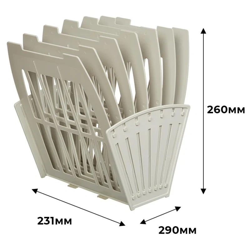 Современный дизайн обеспечивает эстетичный внешний вид. Конструкция предусматривает быструю и легкую сборку, а также регулировку ширины отделений для удобства использования. Передняя стенка оснащена окнами для маркировки, что позволяет менять вкладыши по необходимости.