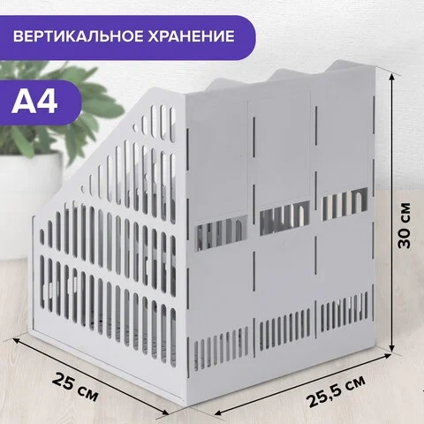 Отзывы о «Накопитель вертикальный для бумаг Brauberg Smart-Maxi А4, 3 секции, 255мм, серый»