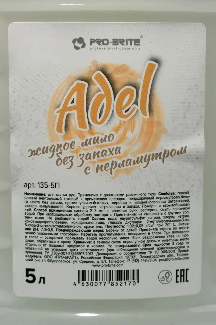 Жидкое мыло наливное Pro-Brite Адель 5л, 135-5П, с перламутром