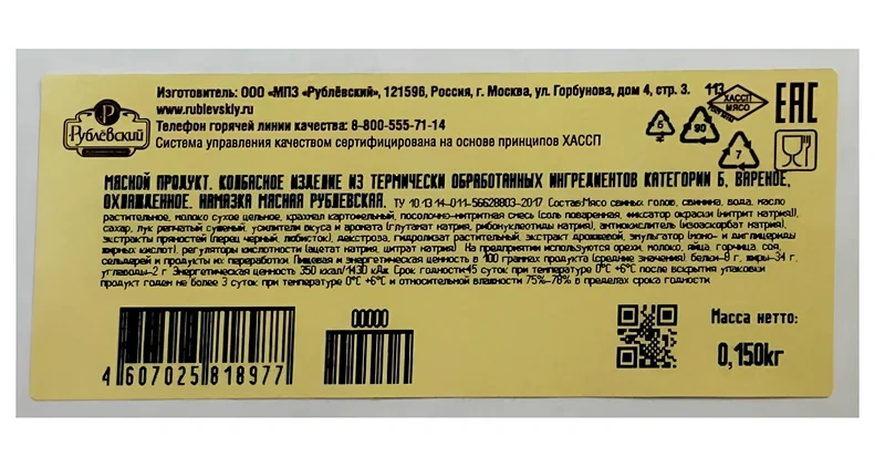 | Стандарт производства | ту 10.13.14-011-56628803-2018 |