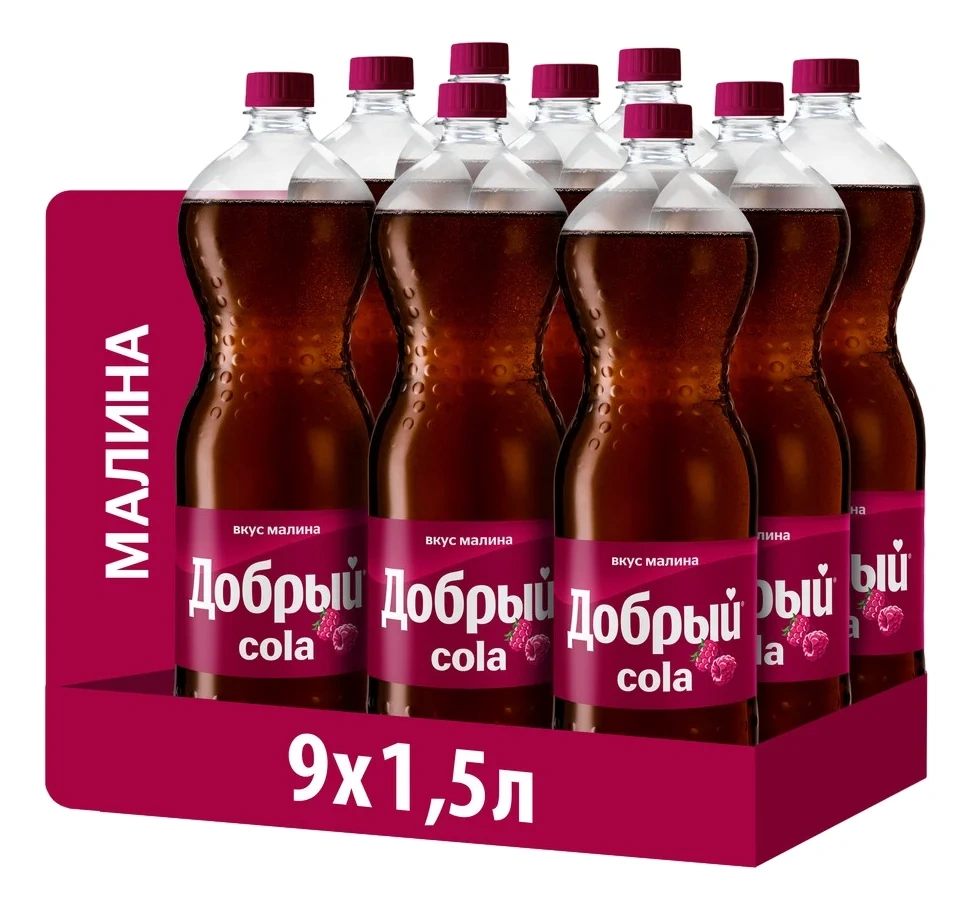 Новый сильногазированный напиток Добрый Кола со вкусом Малина – это освежающее сочетание вкуса кола и аромата спелой малины. Заряд хорошего настроения, которым так хочется делиться с тем, кто рядом! Пейте охлажденным!