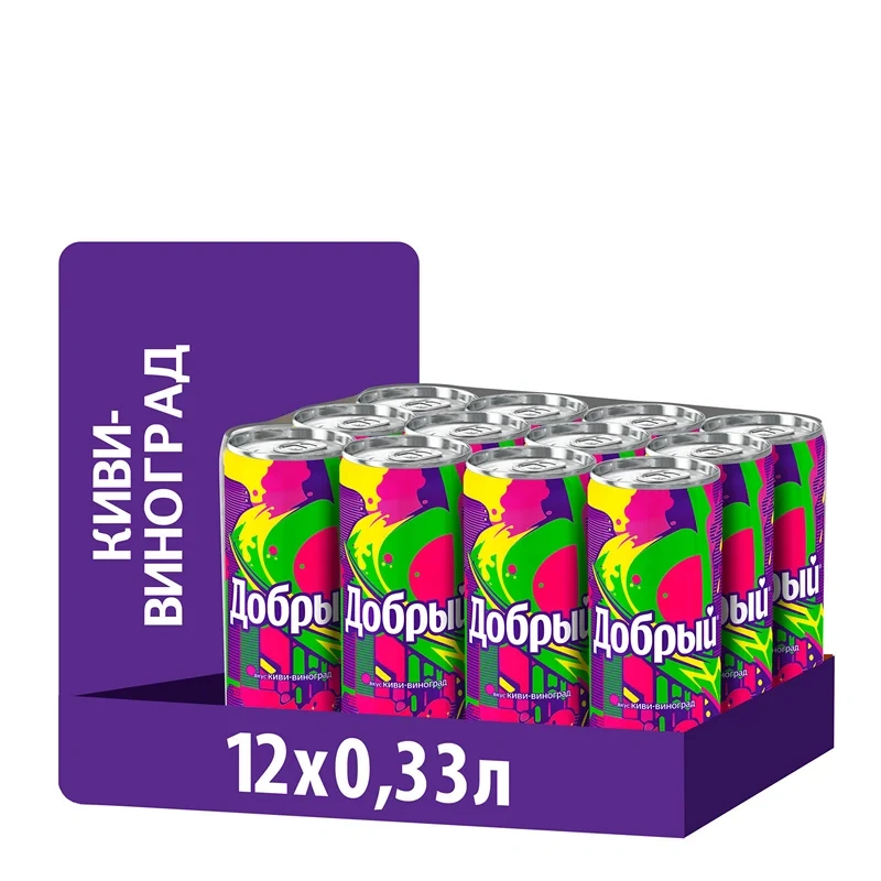 Новый сильногазированный напиток Добрый со вкусом Киви-Виноград - это яркий вкус экзотического киви в сочетании со спелым виноградом и множеством пузырьков. Заряд хорошего настроения, которым так хочется делиться с тем, кто рядом. Напиток ароматизированный Добрый со вкусом Киви-Виноград на основе натурального сока помогает утолить жажду и дарит заряд бодрости на целый день. Рекомендуется пить охлажденным.