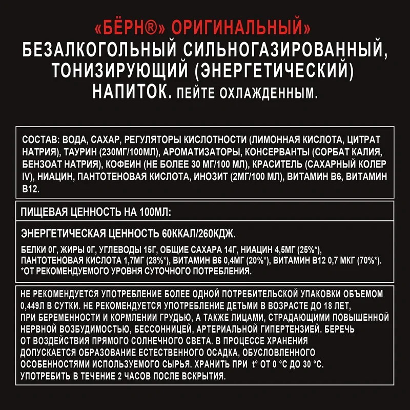 Представленный в России с 2003 года, классический вкус BURN Original уже давно полюбился модной молодежи.Впрочем, найденная формула успеха не могла остановить нас от инноваций — и поэтому, когда мы провели ребрендинг в 2016 году, мы обновили и бодрящий вкус напитка, сделав его вишнёвые нотки ещё более яркими и отчетливыми. Как ни крути, иногда все, что нужно, — это просто добавить огня.Знание о том, как укрощать огонь, навсегда изменило нашу жизнь и отделило нас от всех других видов на земле. Начиная с каменного века, некоторые лучшие идеи человечества рождались вокруг огня — и BURN Energy тоже!Мы создали уникальный энергетический напиток с мягким и освежающим вкусом, который разбудит в тебе огонь. Художники, музыканты, атлеты и творцы знают, что нужно, чтобы начать зажигать. Открой банку BURN Energy — и ты узнаешь сам!