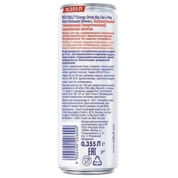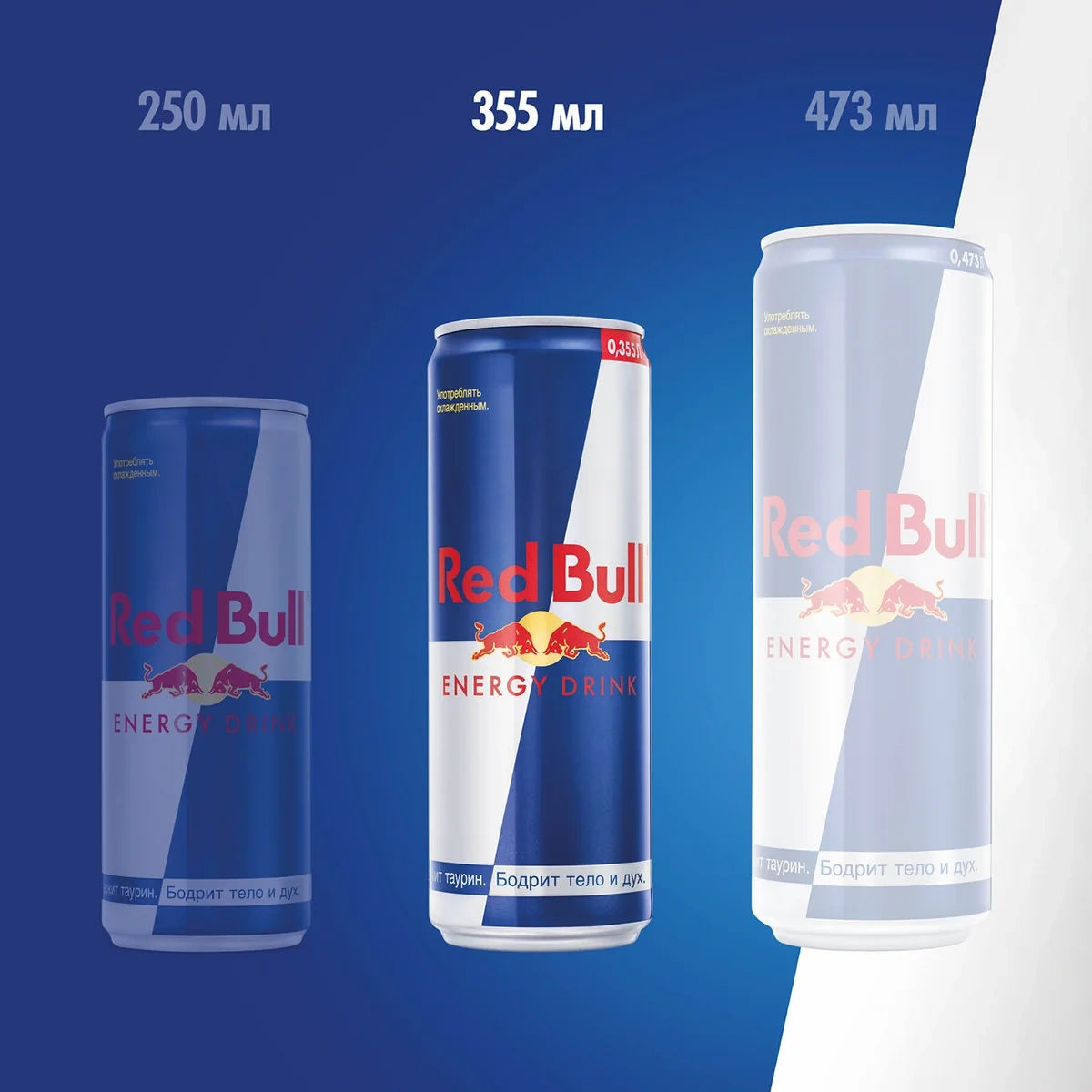 Red Bull Energy Drink — безалкогольный энергетический газированный напиток. Энергетические напитки Red Bull содержат ингредиенты высокого качества: кофеин, таурин, витамины B, сахар и воду из альпийских регионов. В одной банке Red Bull 250 мл содержится столько же кофеина, сколько в чашке кофе такого же объема. Количество сахара в энергетическом напитке Red Bull сопоставимо с уровнем сахара в яблочном или апельсиновом соке – 11г на 100 мл. Банки Red Bull сделаны из 100% перерабатываемого алюминия. Бодрит тело и дух.